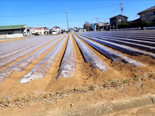 - 1枚目:黒マルチ栽培、品種は男爵、2月下旬定植、6月下旬収穫開始予定