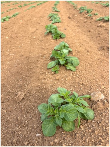 定植初期の圃場では、発芽にややバラつきが散見されるが概ね順調。