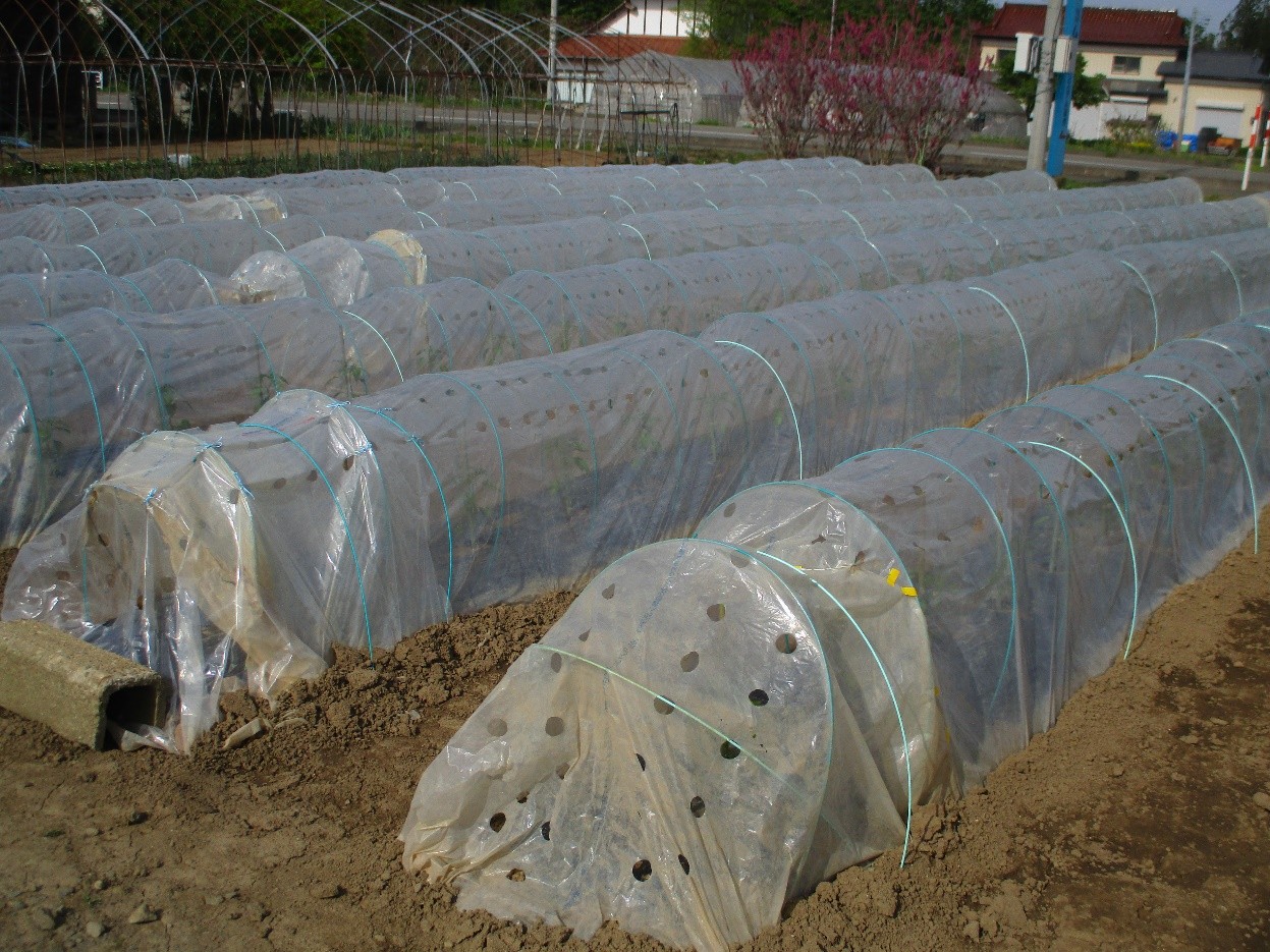 • 1、2枚目露地作型(トンネル)の圃場の様子、定植は5月上旬に終了