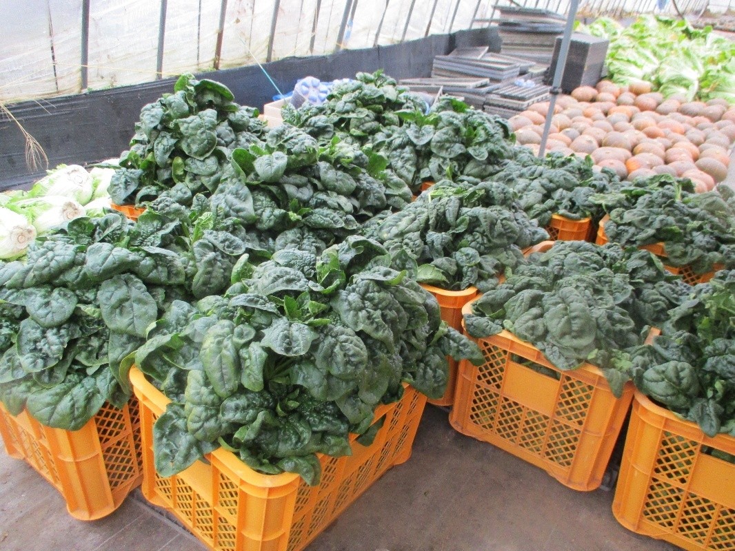 - 4枚目:当該産地は寒締め(ちぢみ)ほうれんそうだけではなく、レギュラーほうれんそうの作付も多い