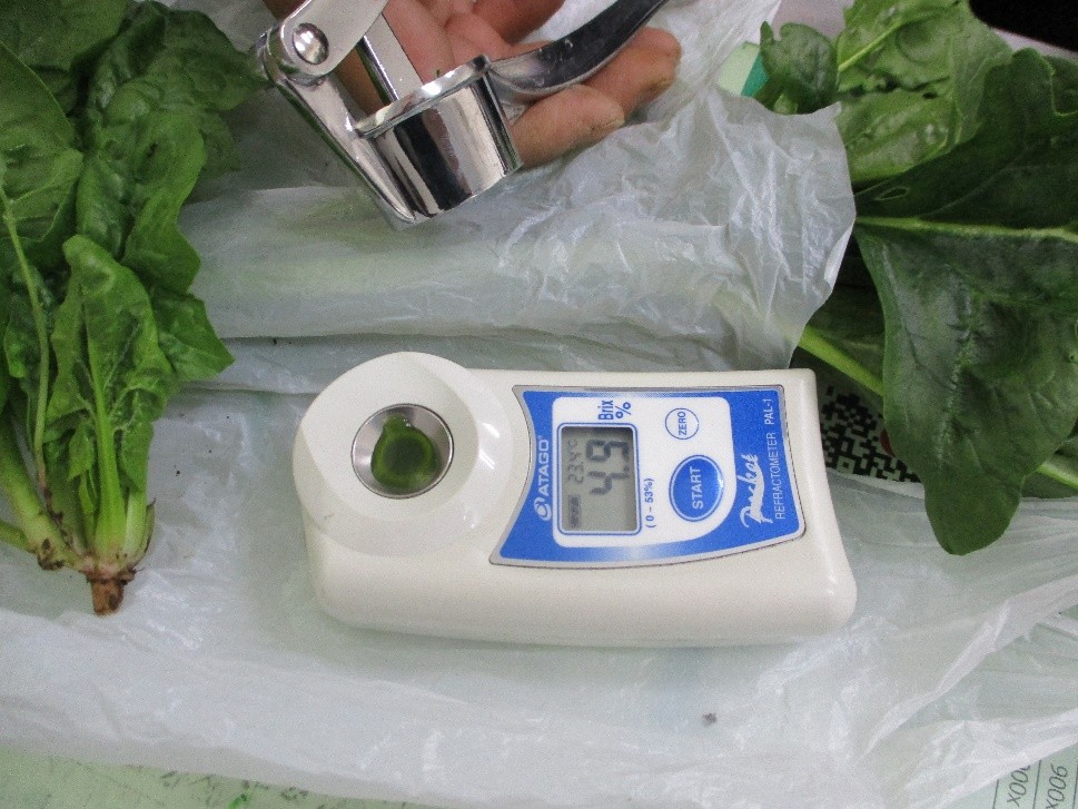 - 3枚目:糖度の測定、糖度が8度を超えないと出荷できない