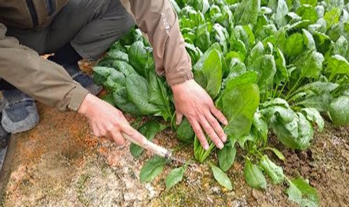3月下旬以降は、平年より気温が高かったため、作業も若干前倒傾向となっている。現在は、播種後35日程度で収穫がされている。
