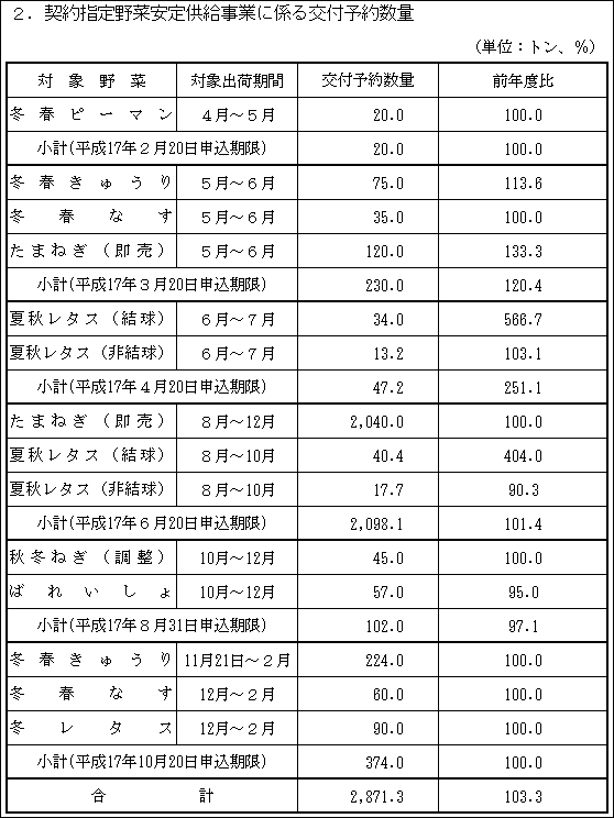 野菜価格安定事業における交付予約数量等の実績(平成17年10月末現在)