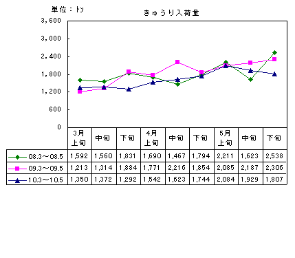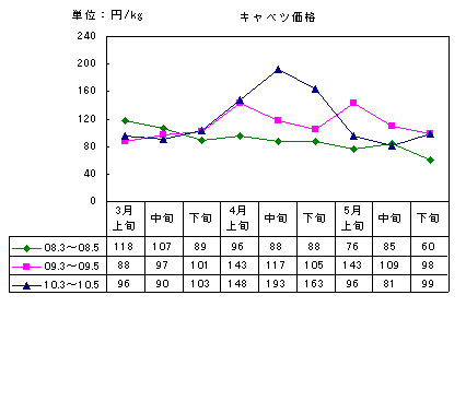 (注 : 東京都中央市場のうち築地市場、大田市場、豊島市場、淀橋市場の入荷量と価格である)