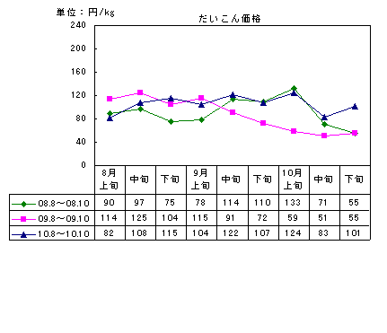 (注 : 東京都中央市場のうち築地市場、大田市場、豊島市場、淀橋市場の入荷量と価格である)