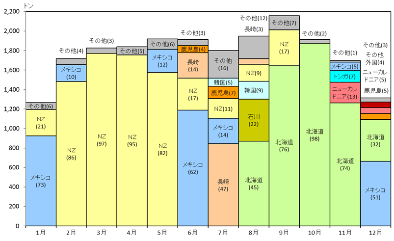 令和元年 かぼちゃの月別入荷実績