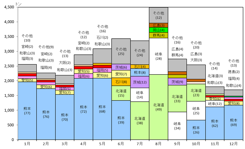令和6年 トマト(トマト+ミニトマト)の月別入荷実績