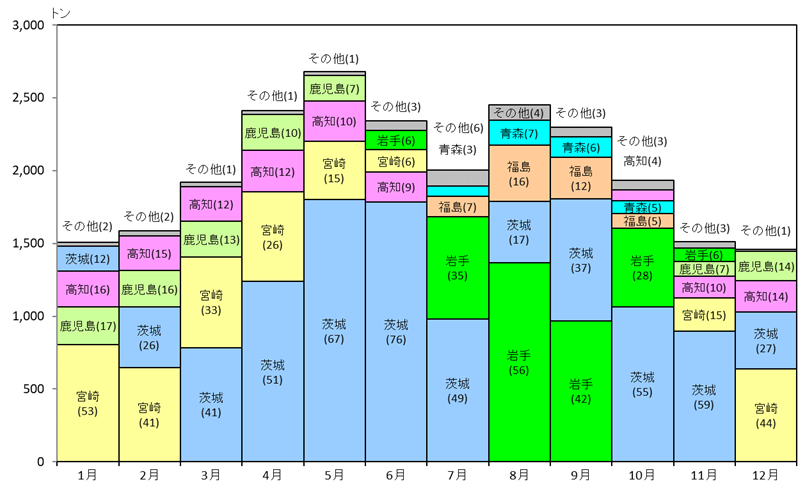 農畜産業振興機構「ベジ探」、原資料:令和6年東京都中央卸売市場年報。パプリカを含まない。