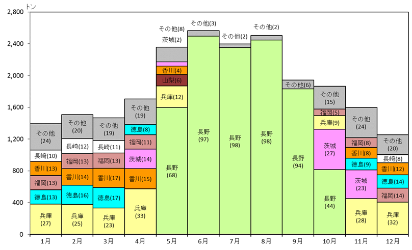 令和6年 レタス(結球+非結球レタス)の月別入荷実績
