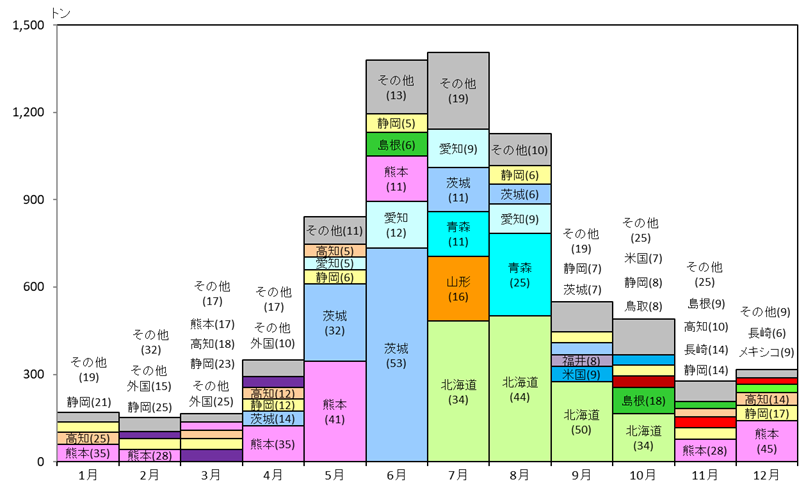 農畜産業振興機構「ベジ探」、原資料:令和6年大阪市、大阪府中央卸売市場年報
