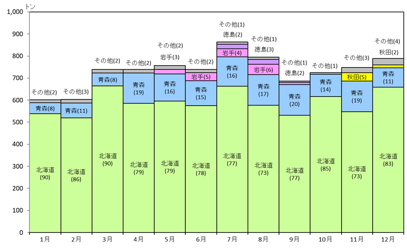 令和6年 やまのいも(ながいも+やまのいも)の月別入荷実績